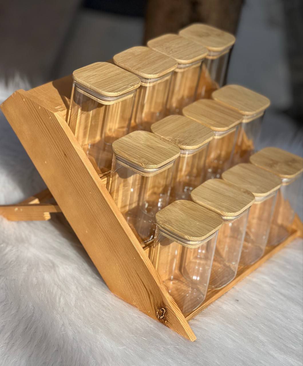 👈عدد 12برطمان مستورد🧂🧂زجاج مربع بغطاء خشب 🪵