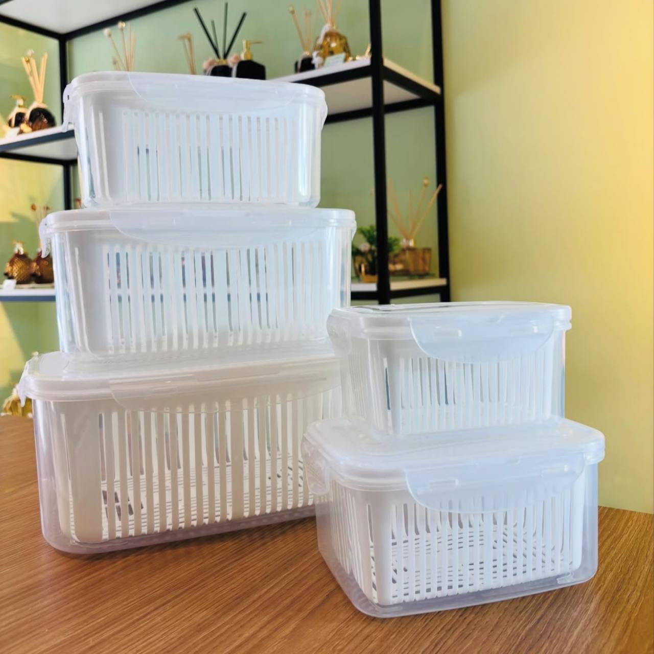 طقم علب ثلاجة بالمصفاة 5 قطع بلاستيك صحي